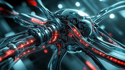 A surreal blend of biomechanical technology, featuring neon cyber veins background wallpaper AI generated image