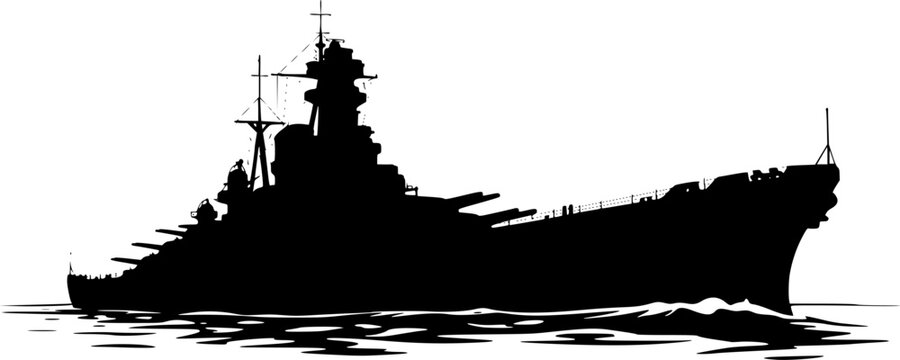 Battleship Silhouette: A powerful and majestic battleship dominates the scene, its silhouette stark against a simplified seascape. This iconic image evokes strength, history, and naval power.