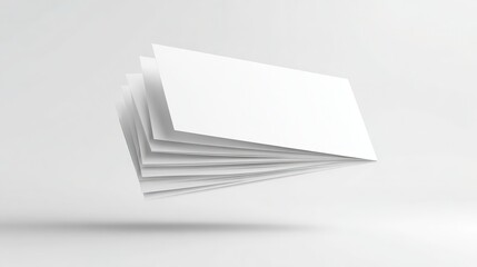 Floating stack of business cards with one offset showing thickness and colored edges on white