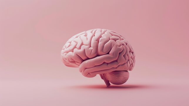 Pink human brain on a pink background