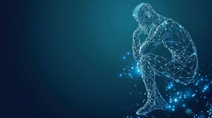 A wireframe polygon thinks in a vintage futuristic style, modern of a great thinker