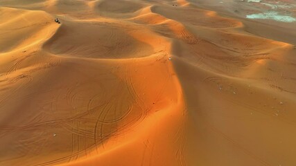 Aerial: Drone Forward Tranquil View Of Sand Dunes In Desert - Riyadh, Saudi Arabia