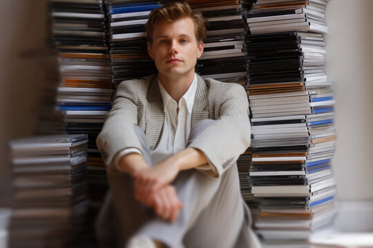 Thoughtful Designer Reviewing Ideas in a Creative Workspace