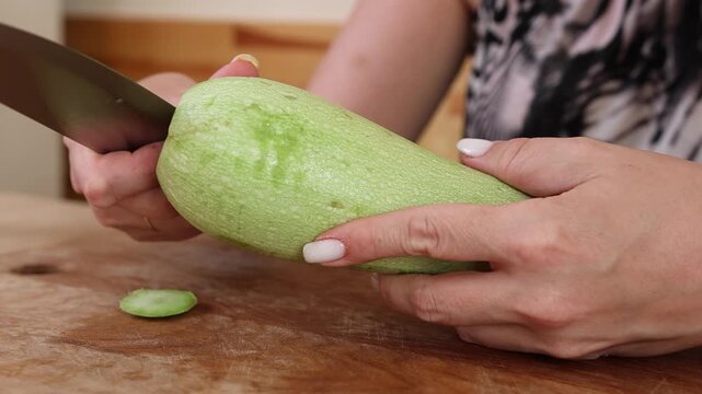 Peel the zucchini. Prepare a dish from zucchini.