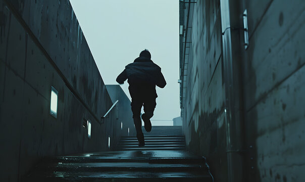 Back View of a Detective Walking, Creating a Mysterious and Suspenseful Thriller Movie Scene