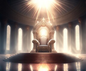 Divine moment  jesus on throne in heavenly glory with radiant light, spiritual photography