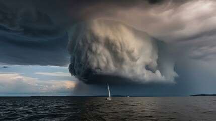 A massive thunderhead looming above a lone sailboat in the midst of a storm Generative AI