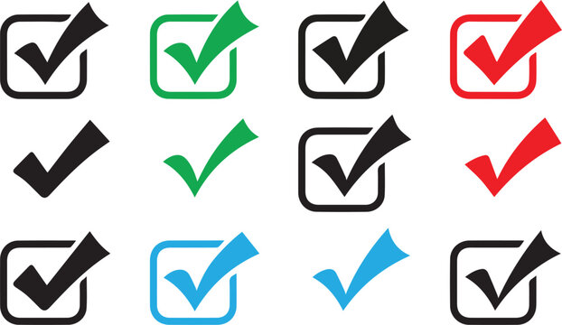 check box icon with correct, accept checkmark icons green tick box, checklist circle frame - checkbox symbol sign.