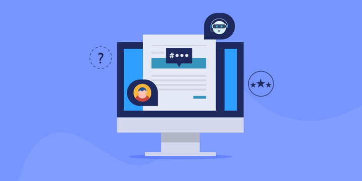 AI chatbot support ticketing system for customer service, e-business software solution conceptual vector illustration.
