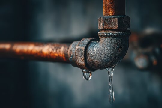 a close-up shot depicts a worker's gloved hands tightening a large, industrial pipe connection with water droplets visible against a dark, blurred background.