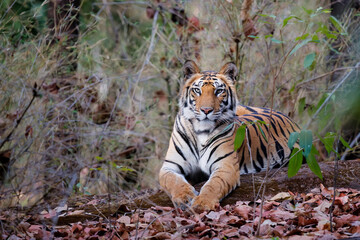 Tiger, Bengal Tiger (Panthera tigris Tigris), resting in Bandhavgarh National Park in India