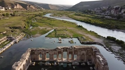 Aerial view of the ancient city ruins of hasankeyf in turkey, located on the tigris river