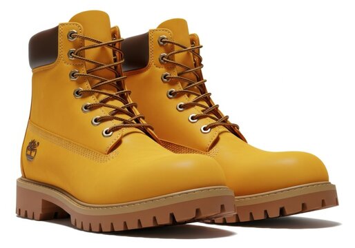 Classic yellow timberland work boots with laces isolated on white background
