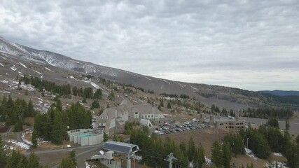 Aerial footage of Timberline lodge on Mount Hood, Oregon