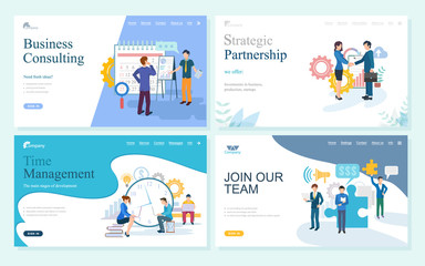 Websites with business consulting vector, join our team, strategic partnership and time management. Partners planning calendar, meeting of people. Website or webpage template, landing page flat style