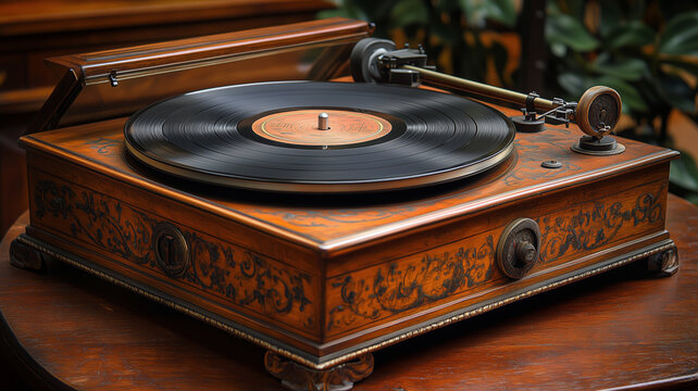 Vinyl records spinning on an elegant vintage player creating a warm atmosphere