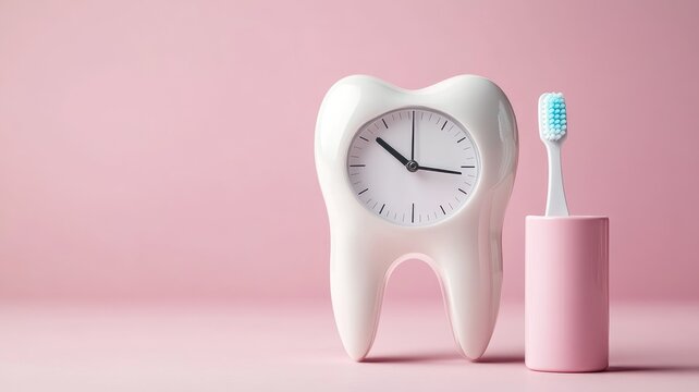 Minimalist white wall clock with rose gold hands hangs on pastel pink textured wall. Simple modern design object shows passing time, offering copy space for text.