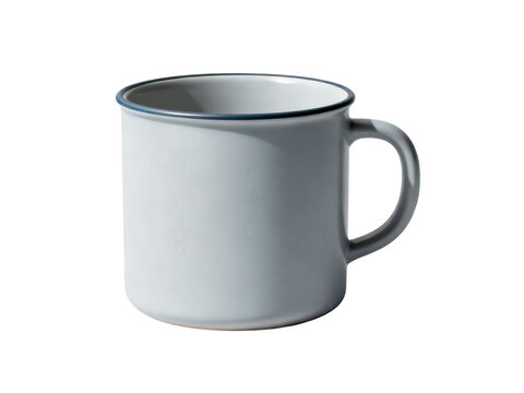 Gray enamel camping mug, vintage style metal cup. Outdoor drinkware for hiking, travel, and coffee. Retro tin coffee cup. Isolated on transparent background, png