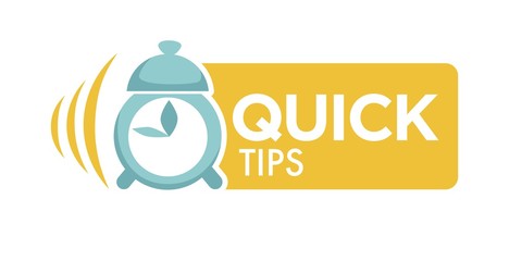 Quick tips logo with alarm clock and big sign.