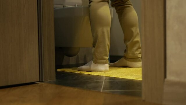 Prostate adenoma in humans. Urinary tract disease. Man near the toilet in pain. A man has problems with the genitourinary system and frequent urination