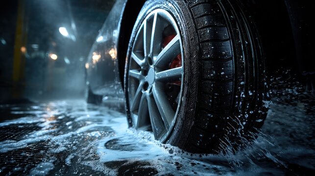 Beautiful powerful alloy wheels for SUVs close-up on a black background, copy space panoramic