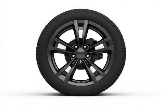 Close-up of a mechanic examining a car tire on a lifted vehicle in a workshop. Modern, detailed style, garage setting. Concept of vehicle maintenance. Ai generative.
