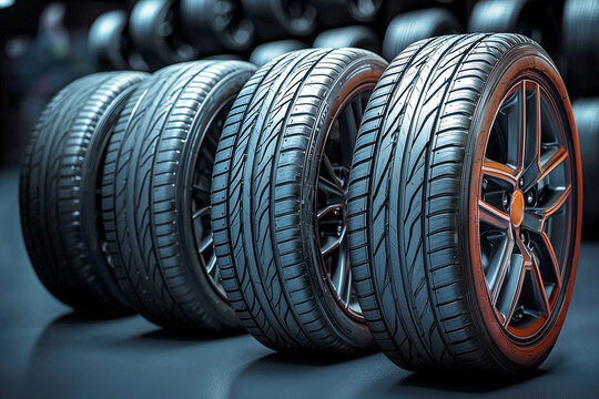 New tires on the storage shelf, new tire placed on tire storage rack in the car workshop at warehouse. Be prepared for vehicles that need to change tires