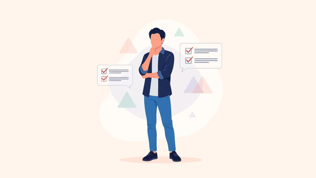 Thoughtful young man analyzing checklist and making decisions about tasks