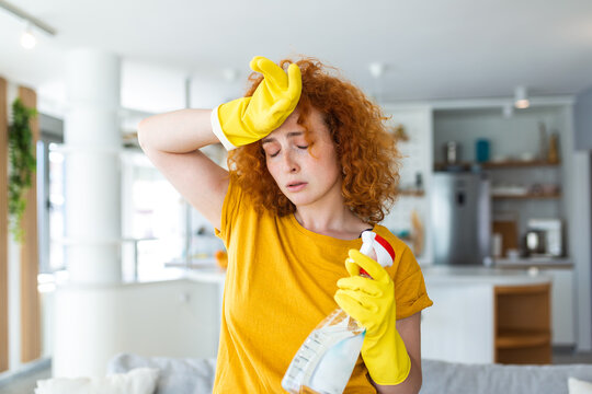 Tired, sweating or breathing with face of girl in gym for cardio workout or wellness relaxing. Exercise training, breathe or portrait of exhausted female sports athlete resting in fitness center
