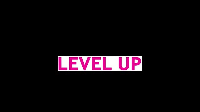 Video animation of level up title rotating in and out animation in pink and white on a black background - seamless loop. Suitable for gaming