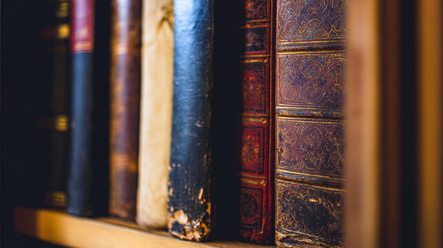 Opened book and stacks of old books on wooden desk in old library. Ancient books historical background. Retro style. Translation of book titles - history of England, ancient history
