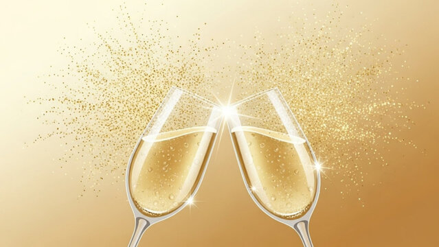 Champagne toast with golden glitter sparkle celebration