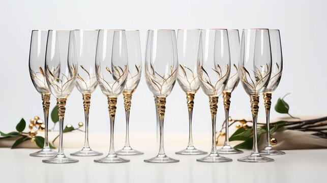 Elegant bar counter with sparkling wine glasses, illuminated by soft golden light, evoking sophistication and nightlife ambiance