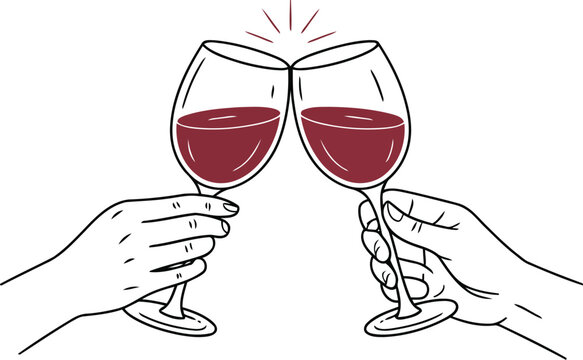 hands clinking wine glasses with red wine on dark background symbolizing celebration, toast, and social gathering