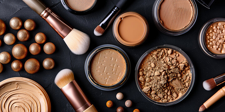 Verschiedene Kosmetika auf neutralen Hntergrund dekoriert. Mit Zubehör zum schminken
