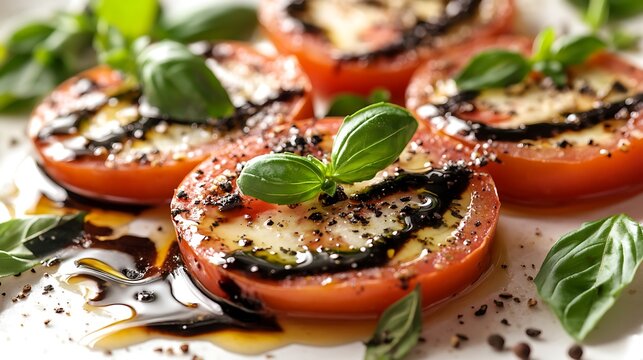 Delicious french cuisine with bread, tomatoes and gourmet sauce