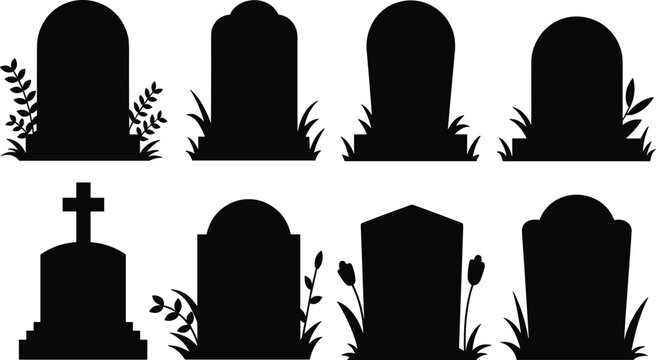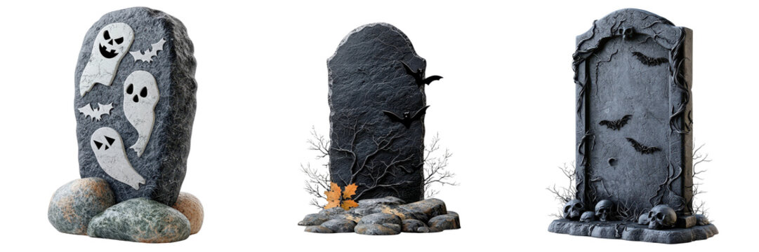 Collection of Realistic Tombstones Diverse Styles  Textures for Design Projects set white Background against transparent Background