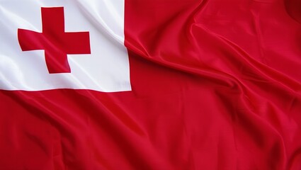 Tonga’s red flag with white canton and red cross—symbolizing Christian faith, sacrifice, and purity.