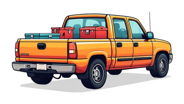 Orange Pickup Truck Loaded with Red and Blue Toolboxes in Bed