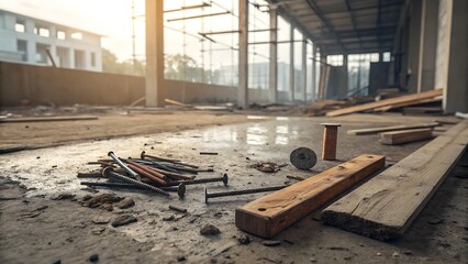 Rustic wooden table in a blurred workshop with natural light and wooden beams