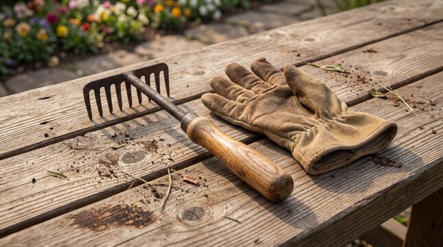 Garden tool used for tilling soil during spring planting season in a backyard setting