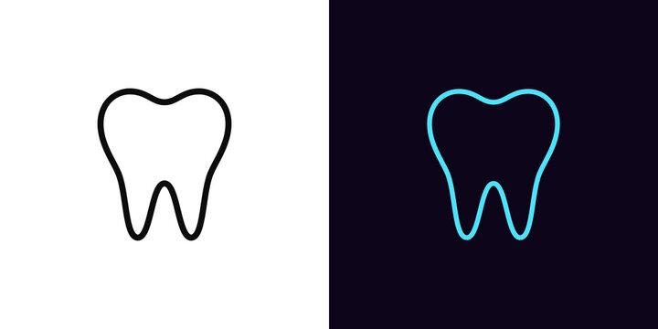 Tooth or teeth icons for dentistry clinic, toothpaste and dental mouthwash. Vector outline healthy tooth or teeth icons
