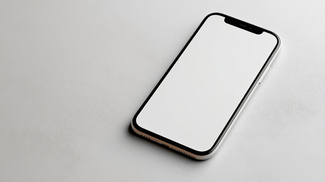 White smartphone mockup blank screen lying on textured surface, minimal modern tech mood