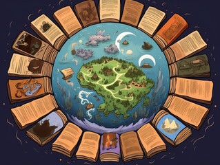 Anime-inspired classic library scene, tranquil atmosphere, dark wood paneling, old novels on bookshelf, sophisticated globe on top shelf