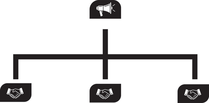Top tier management uses a megaphone and achieves deals with three parties in black and white