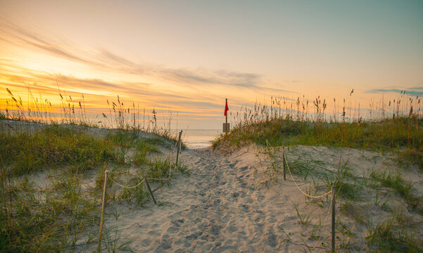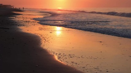 Beautiful sunrise, waves, and ocean scenery at Topsail Beach, a vacation community by the Atlantic ocean in North Carolina, USA