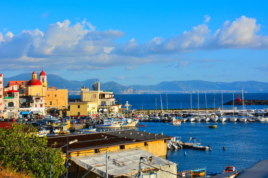 Aerial View of Darsena di Torre del Greco, Naples, Italy: Harbor, Boats, Coastal Cityscape