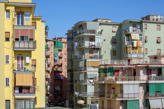 View of a neighborhood with colorful buildings of Torre del Greco in Italy - The town of Torre del Greco is very close to Naples.