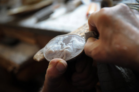 craftsmanship in Campania in Torre del Greco near Naples of the coral cameos