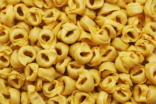 Freshly made uncooked Italian tortellini pasta